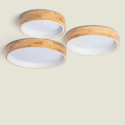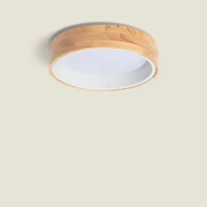 Ceiling Light Round Wood Metal White 15W 1000lm - 830-840-860 CCT