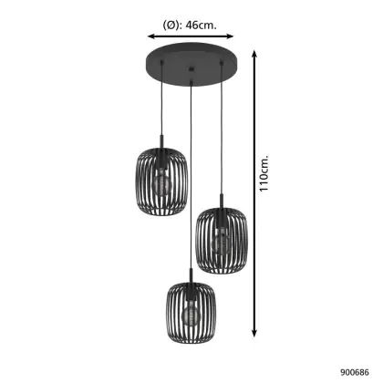 Eglo Pendant Romazzina Steel Black | Suitable for 3x E27