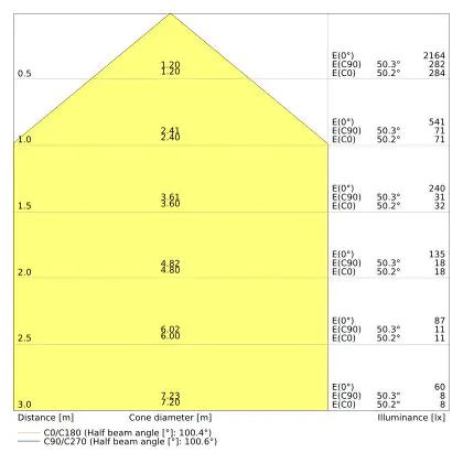 Beam angle of 100°