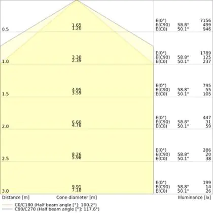 The colour code is a combination of colour rendering (CRI) and light colour (Kelvin). The first number indicates the colour rendering (1 = very poor colour rendering, 9 = maximum colour fastness). The second and third number contains the light colour. Example: the colour code 830 consists of good colour rendering (8) and warm white light (3000K). |