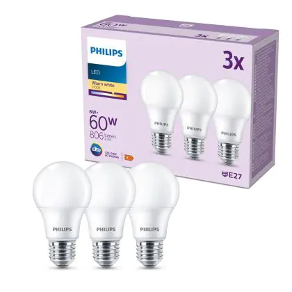 | Manufacturer Name | Box 3 stuks - Philips LED Lamp Mat - 60 W - E27 - Warmwit licht | |