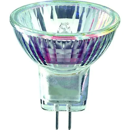 Philips Brilliantline Dichroic are halogen lamps with reflectors. These lamps are composed of a neon filled halogen burner, and of an axial filament in a glass reflector.