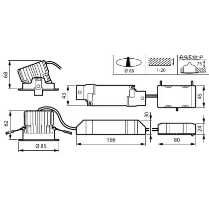 | Cut out (mm) | 68 | |