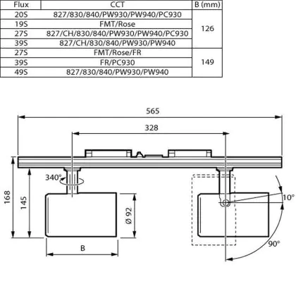 The colour code is a combination of colour rendering (CRI) and light colour (Kelvin). The first number indicates the colour rendering (1 = very poor colour rendering, 9 = maximum colour fastness). The second and third number contains the light colour. Example: the colour code 830 consists of good colour rendering (8) and warm white light (3000K). |