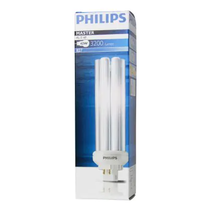 Philips PL-T 42W 827 4P will provide a warm white light, corresponding to a colour temperature of 2700K. Philips PL-T 42W 827 4P are very energy efficient, their energy label is classified B. These lamps offer the advantage of having a very long lifespan, 13000 hours on average.