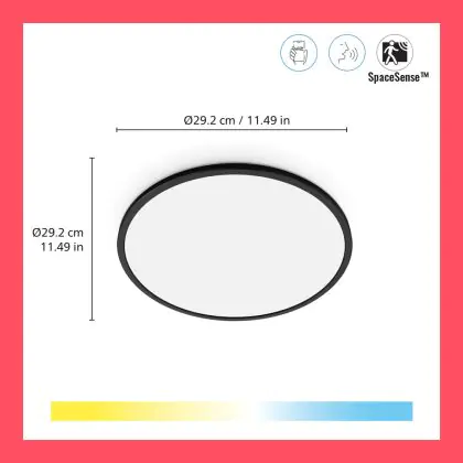 WiZ Smart LED Ceiling Light SuperSlim Black 16W 1300lm - 927-965 Tunable White | IP20 - Best Colour Rendering - Wifi Dimmable